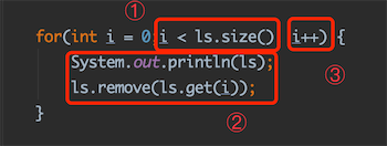 先判断是否满足条件 → 执行循环体 → 自增 ,打断点跟下i、ls.size(),记录如下: