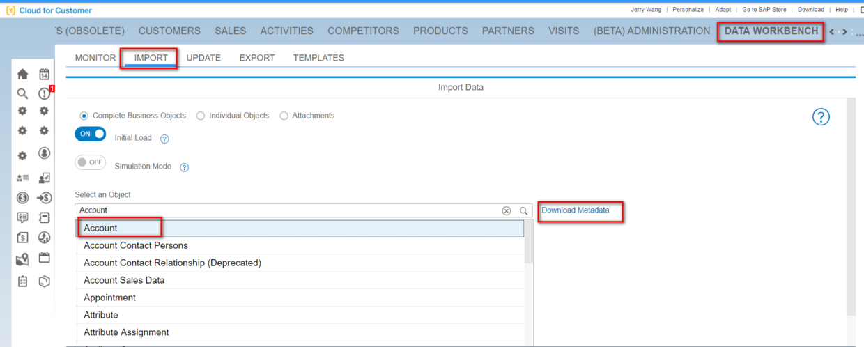 使用Excel导入数据到SAP Cloud for Customer系统 已注销 2020-02-15 121 阅读1分钟 假设要上传Account的数据到系统: 点download metadata: 自动download一个zip下来: 在folder Templates里维护要上传的Account data: 把维护好的excel重新打成zip, upload: 稍后在monitor里会观察到成功上传的task: 看到import成功的消息: UI上能搜索出这条今天(2017-11-14)创建的Account: 要获取更多Jerry的原创文章,请关注公众号"汪子熙":