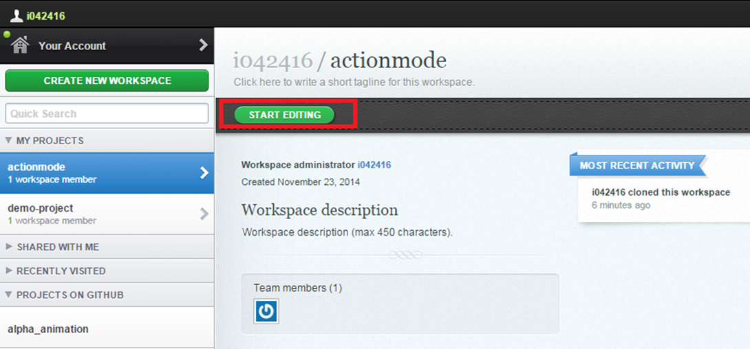 还有另一种方式做Android开发即使用Cloud IDE: 登陆 ide.c9.io/, 选择一个github上存在的repository,点击Start Editing: