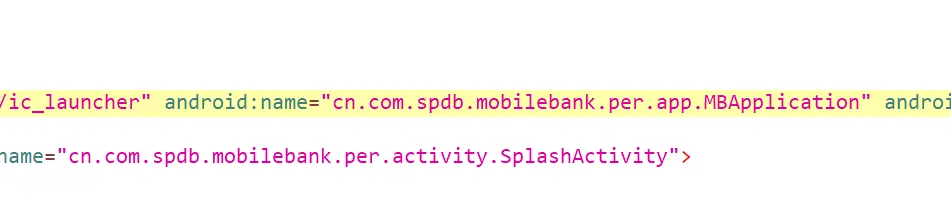 现在勒让我们捋捋思路 在程序一启动就崩溃 说明校验是存放在入口点或者入口页面的初始化函数里面 先掏出我们的逆向工具 jadx反编译一波 找到AndroidManifest.xml文件里面 我们知道入口点比入口页面执行的时机要早 直接先从入口点的onCreate()函数入手