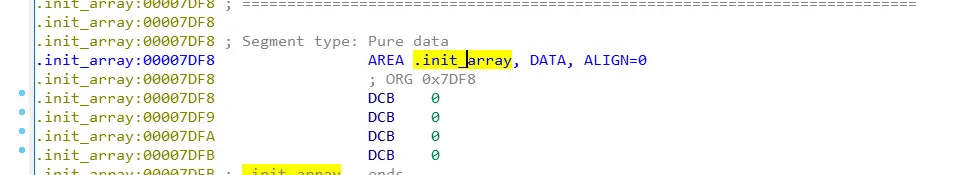 找到节区分析 逆向分析思路一定得要清晰 先不慌搜索注册得函数 先看一波init跟init_array 不清楚这部操作的小贴友们不要慌 推荐学习一下so文件的加载流程以及ELF文件结构 (可能下篇文章会详细讲到 不过市面上也有很多百度一波就行 看不懂就留言