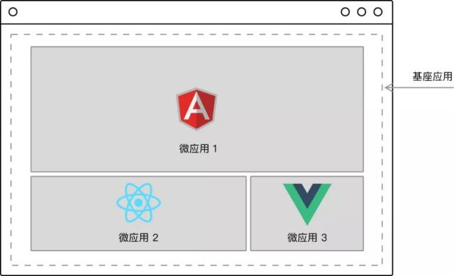 前端微服务化,是微服务架构在前端的实施,每个前端应用都是完全独立(技术栈、开发、部署、构建独立)、自主运行的,最后通过模块化的方式组合出完整的前端应用。其架构如下图所示: