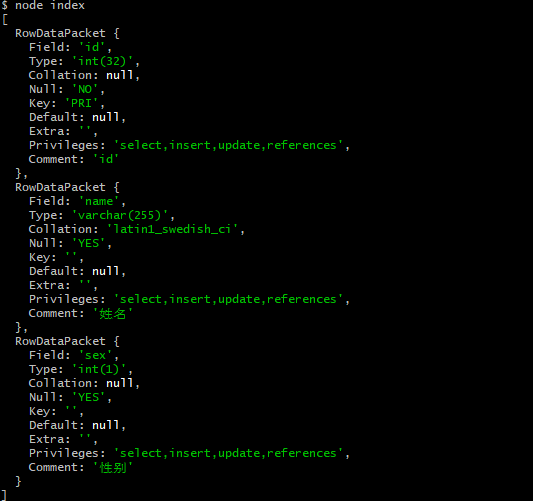 使用了这个包mysql来连接数据库读表结构