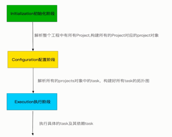 - 执行阶段:执行具体的的task及其依赖task。