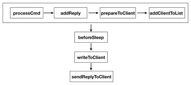 本地线程需要异步发送数据时,先检查client是否属于本地线程,非本地线程获取到client专属的线程ID,之后给专属的线程管到发送AE_ASYNC_OP::CreateFileEvent的操作,要求添加写socket事件。专属线程在处理管道消息时将对应的请求添加到写事件中,如图所示: