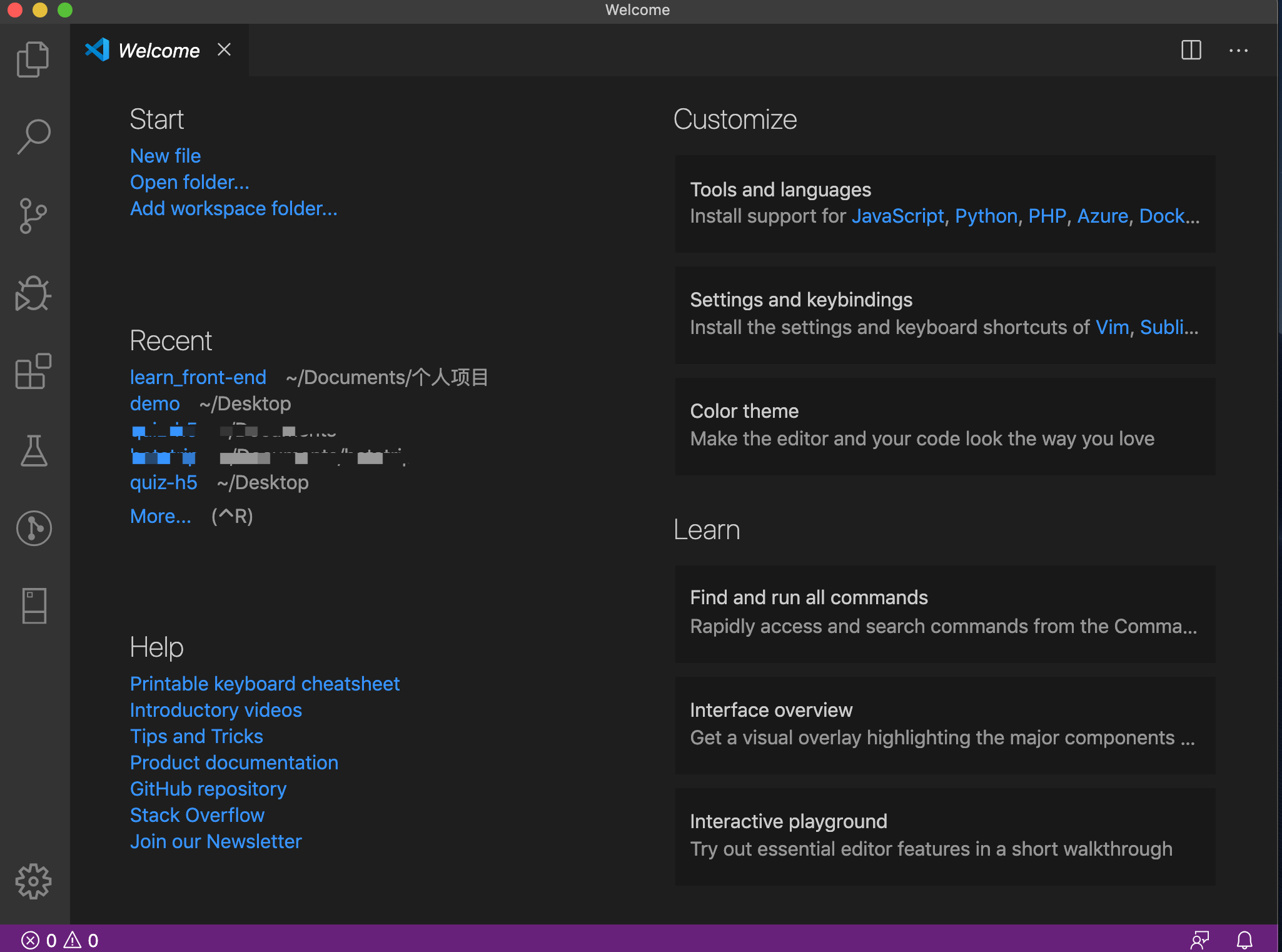 - 此时vscode软件已经安装好并在电脑上打开如图所示