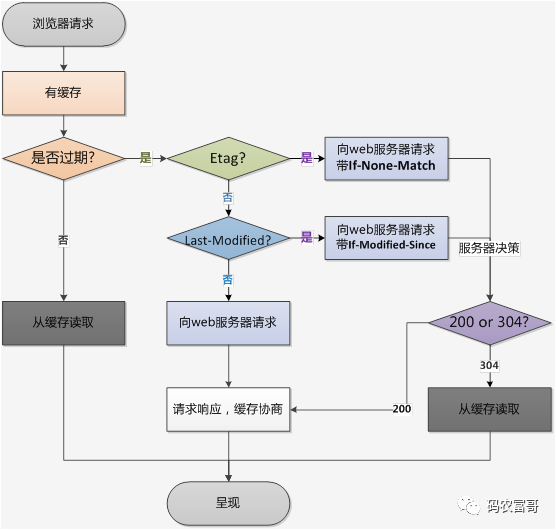 Etag / If-None-Match(优先级高于Last-Modified / If-Modified-Since)服务器响应请求时,通过Etag头部告诉浏览器当前资源在服务器的唯一标识(生成规则由服务器决定),浏览器再次请求时,就会带上一个头If-None-Match,这个值就是服务器上一次给的Etag的值,服务器比对一下资源当前的Etag是否跟If-None-Match一致,不一致则说明资源修改过了,浏览器不能再使用缓存,否则浏览器可以继续使用缓存,并返回304状态码
