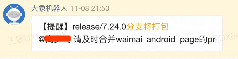 - 每天早上同步Aimeituan的Release分支,及时周知负责人同步结果,减少人工Check的重复工作。
