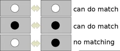 另一个重要的改进是对基础兴趣点使用了Laplacian算符(海森矩阵的迹)。它不增加计算成本,因为它已在检测期间进行了计算。拉普拉斯算子的标志将深色背景上的明亮斑点与相反的情况区分开。在匹配阶段,我们仅比较具有相同对比类型的特征(如下图所示)。这些最少的信息可加快匹配速度,而不会降低描述符的性能。