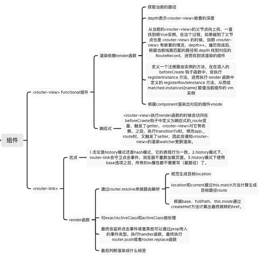 上一篇我们分析了vue-router通过confirmTransition函数去执行导航守卫,我们也知道vue-router是靠<router-link>和<router-view>组件完成跳转和渲染的。本次我们就来简要分析一下其中<router-view>渲染和<router-link>跳转的原理是什么。