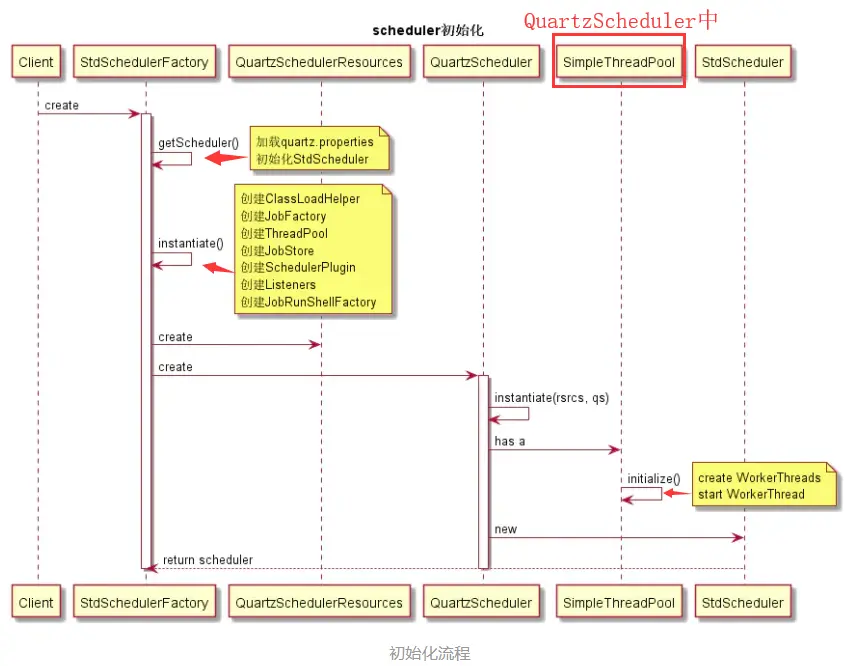- StdSchedulerFactory.instantiate():生产StdScheduler过程中会new一个QuartzScheduler实例