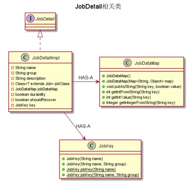 但是大部分情况下,每个定时任务都有一段公共代码,如触发处理jobDetail的逻辑等,所以这里定义一个抽象Job类,即BaseJob类来屏蔽execute方法,并且直接在execute方法中调用一个新的doJob()方法。这样的话