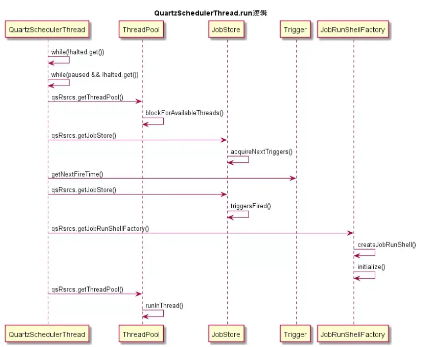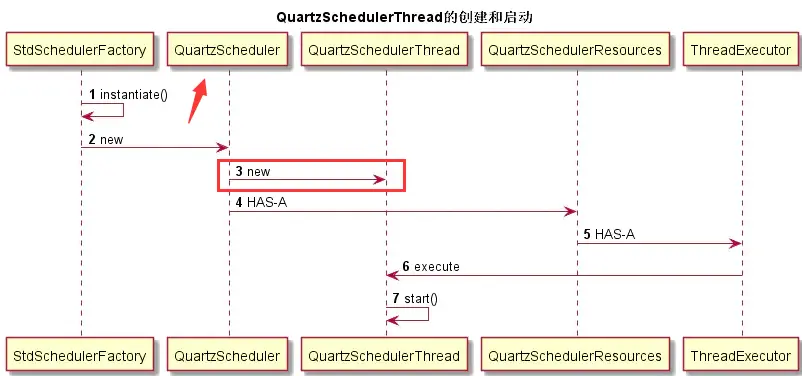 - 在QuartzScheduler的构造器方法里面可以看到创建QuartzSchedulerThread的代码逻辑,并通过QuartzSchedulerResources对象获取ThreadExecutor对象,最后execute新建的QuartzSchedulerThread。
