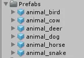 先准备好需要显示在识别图的3D物体,生成预制体,每张识别图对应一个预制体。大家可以用cube、sphere、capsule等代替,或者从asset store下载素材。然后将预制体的名称修改为和识别图名称一致,方便后面调用。