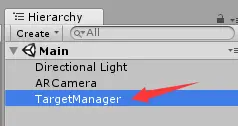 首先将scene中的ImageTarget删掉,然后创建一个GameObject,再新建一个脚本命名为TargetCreator并挂载到该GameObject上,后面将通过这个GameObject管理ImageTarget,如图: