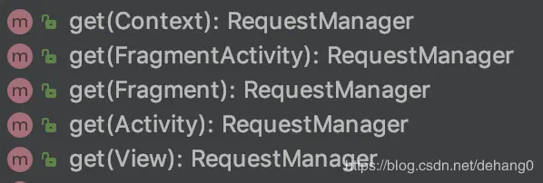 get的其他重载方法都是试图获取到FragmentManager,然后调用supportFragmentGet方法或者fragmentGet方法查找或创建RequestManager对象。 (ps:fragmentGet方法适配android.app.FragmentManager,已弃用)