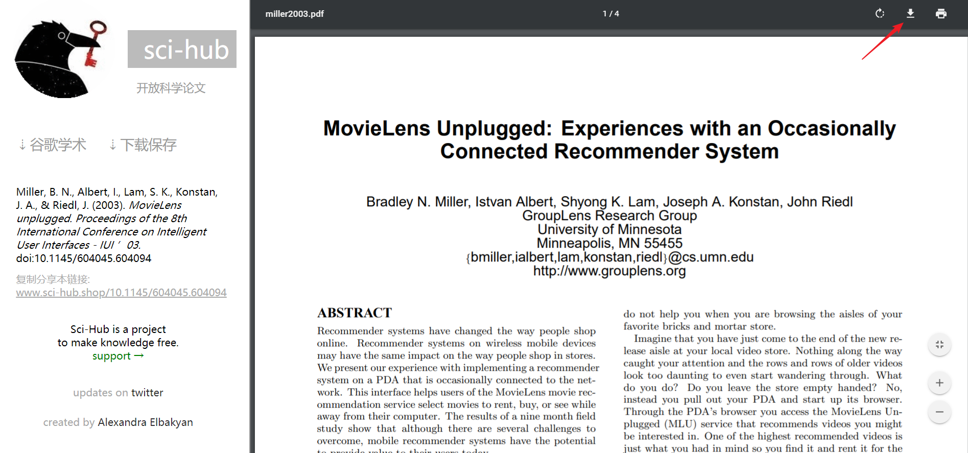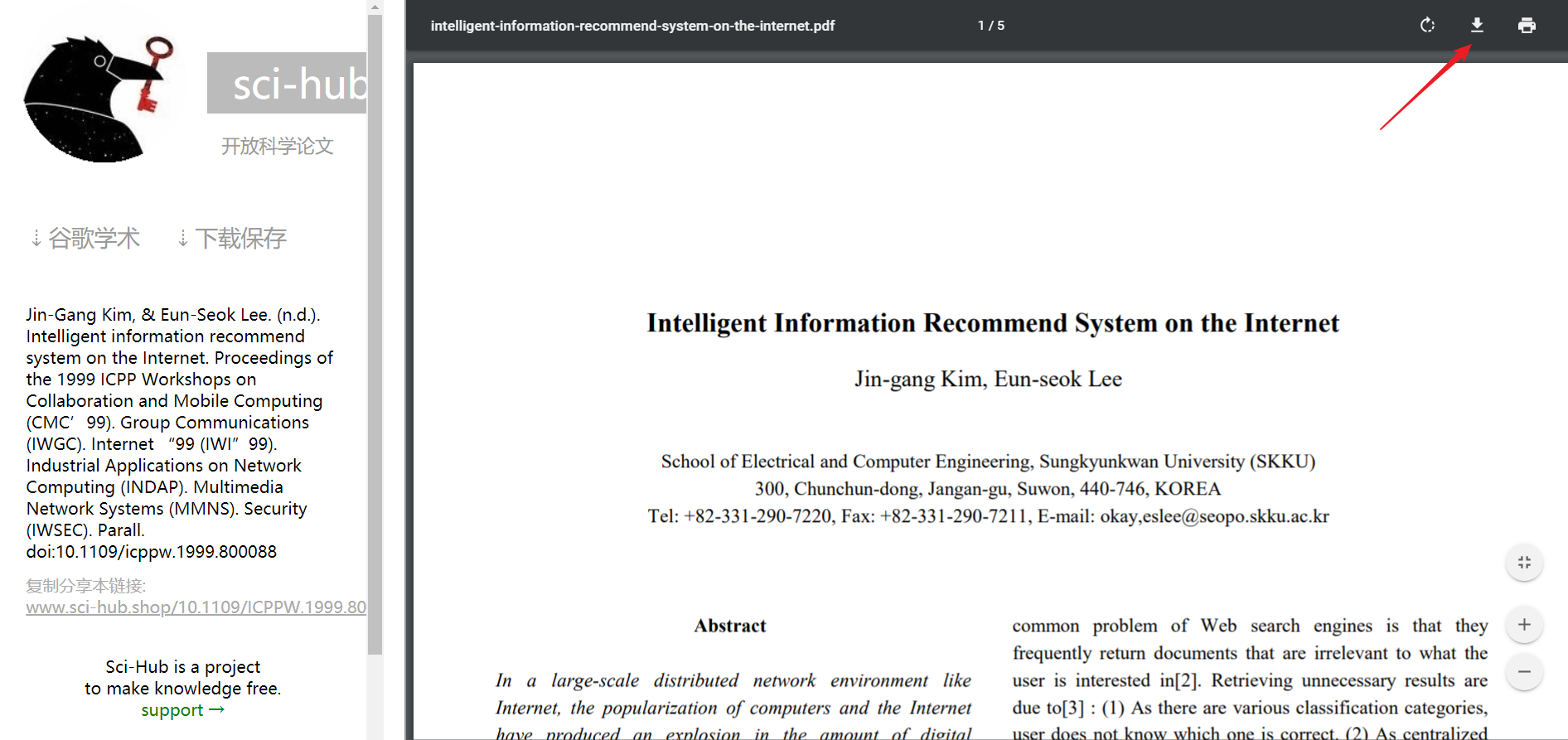 然后发现可以看到该论文,并且右上角有下载按钮,点击下载
