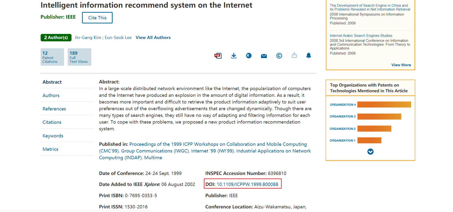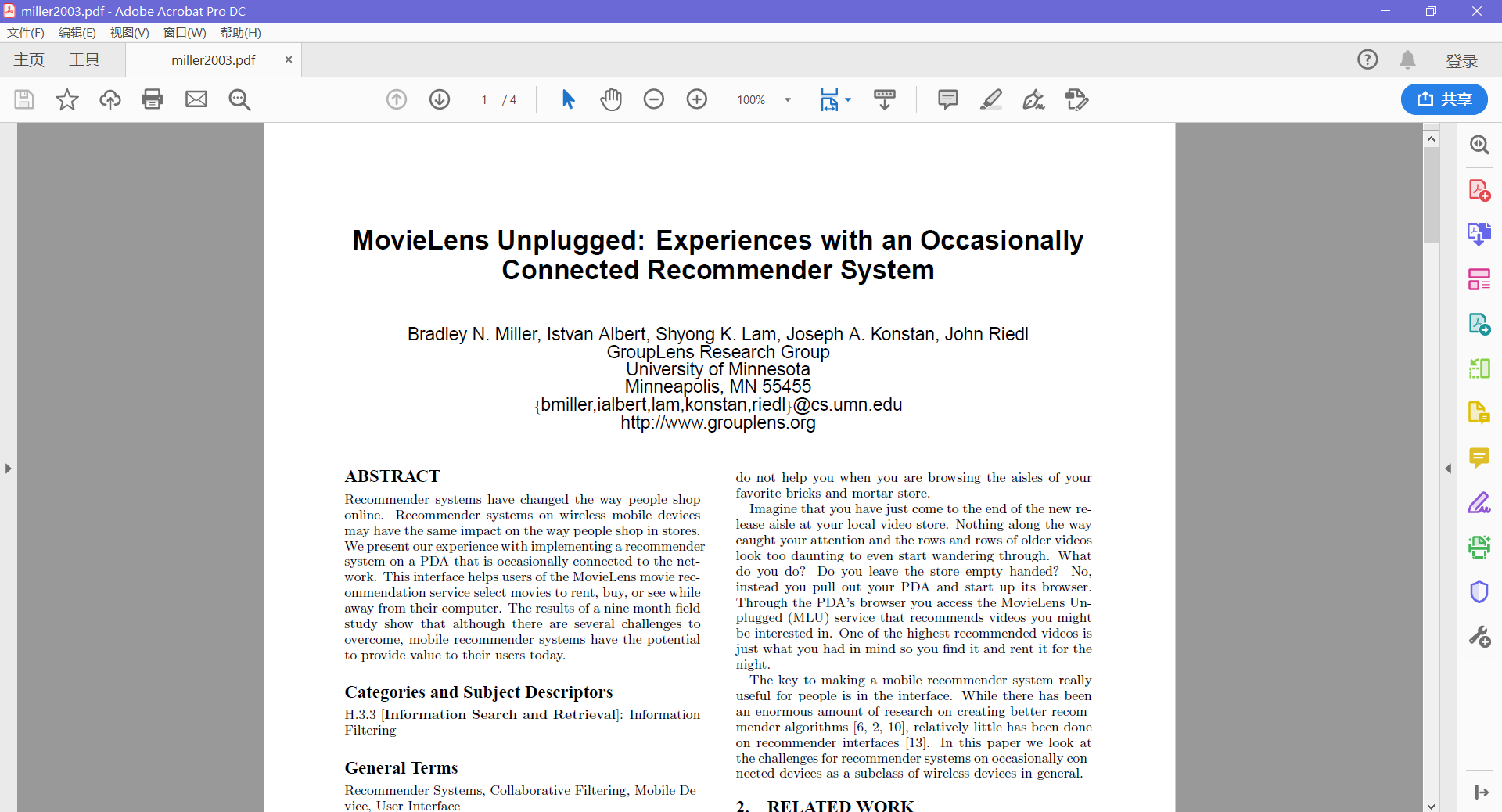 搜索你要的外文文献,比如我搜了下:recommender system,选择其中一篇文献打开