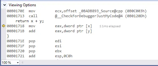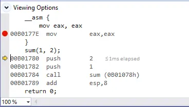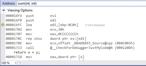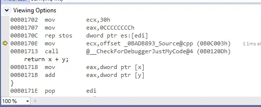 接下来的两步指令我们忽略,它们是vs编译器添加的调试指令