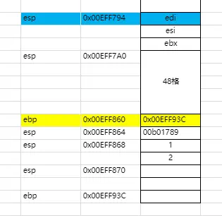 接下来的三步操作依旧可以忽略,它们是vs编译器生成的,用来检测堆栈是否平衡,如果不平衡的话在这里就会产生报错。