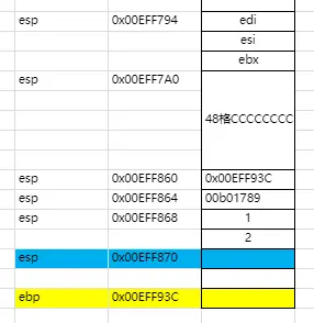 我们先假设初始状态下的堆栈图如下,esp与ebp的真实距离我们省略。