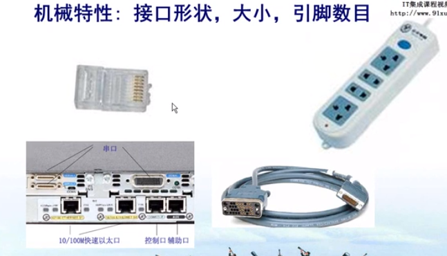 - (1)机械特性指明接口所用接线器的形状和尺寸、引脚数目和排列、固定和锁定装置,等。平时常见的各种规格的接插件都有严格的标准化的规定。
