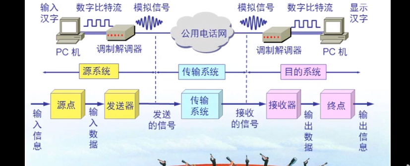 数据先经过电压的(编码)变为比特流,比特流经过调制变为信号
