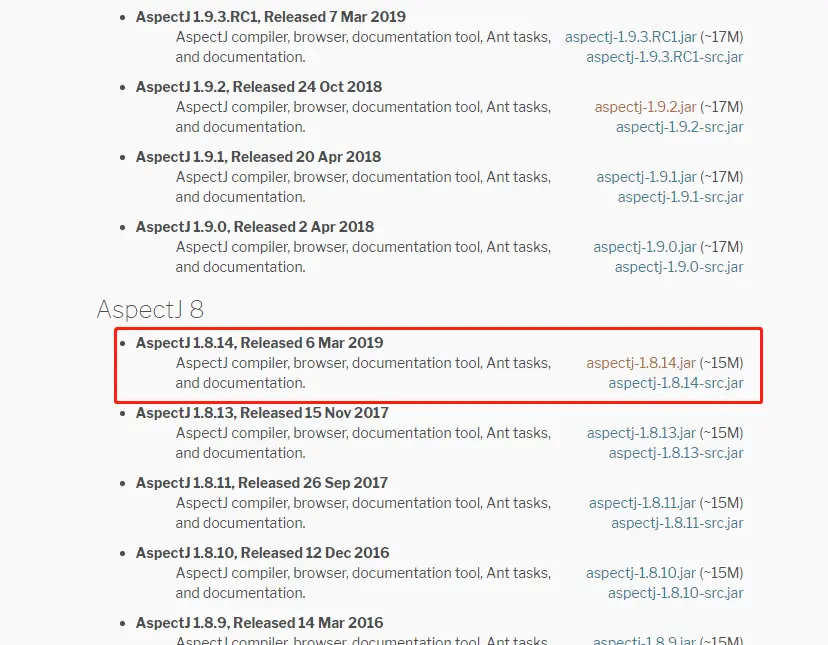 即可下载到一个可执行的 JAR 包,我下的是 aspectj-1.8.14.jar,使用 java -jar aspectj-1.8.14.jar 命令,