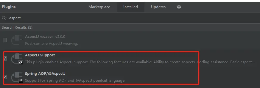 在专业版 IDEA 中开发 AspectJ,需要确保下述插件被激活: