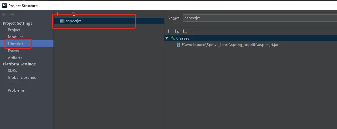 在项目中添加 aspectjrt.jar依赖,aspectjrt.jar即 AspectJ 安装目录中lib目录下的 jar 包。