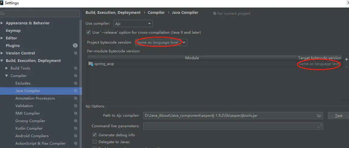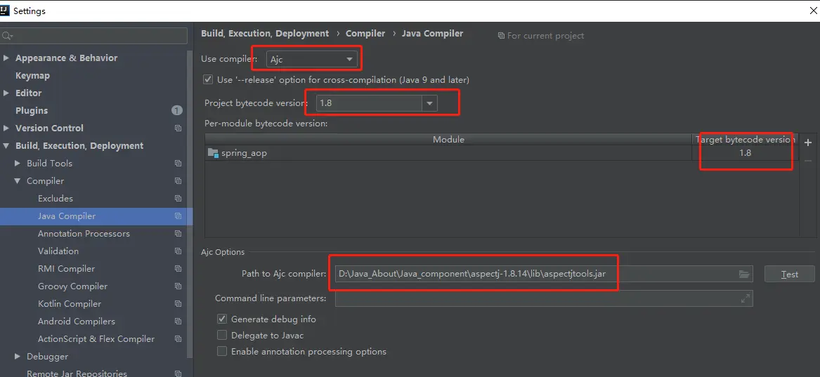 IDEA 默认使用javac编译器,如果要使用 AspectJ 的编译器ajc,需要在 IDEA 中进行相应的配置。