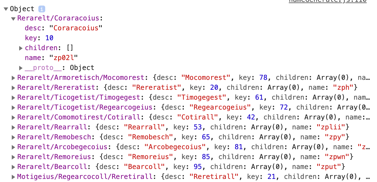 而处理这样的数据时,有的时候我们会有这样的需求,就是从根结点开始,去找到通向某个结点的路径。当然既然children是一个Array,那么我们用一个包含array index的array就可以表示一个树上从根结点到某个结点的路径了。然而这种方法可读性比较差,我们不可能靠记忆下标来进行查找。我们通常是通过字符串来表示路径的,比如文件路径和URL,通过一个分隔符“/”来表示层次关系。