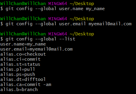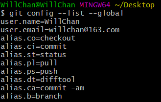 在 global 配置中,我配置了user.name 和 user.email,这两个配置比较重要,它们分别将作为