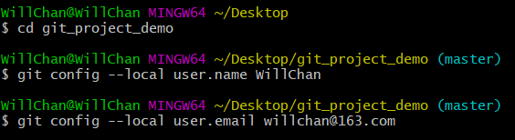 仓库中生效!假如我们想在一个特定的仓库中使用特定的用户名和邮箱,那么,使用local 级别的配