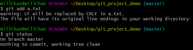 我们把刚刚创建的文件add,暂存区重新变得干干净净了: