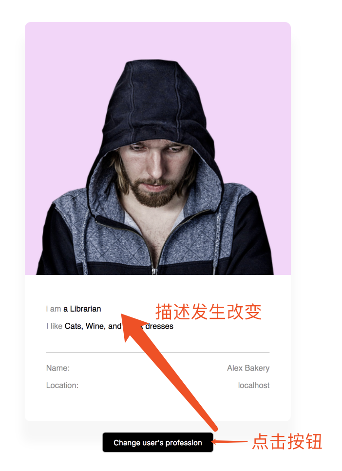 下图demo的为一个简单的功能,点击按钮,更新文案中的专业描述
