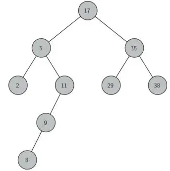 - search(key): 在书中查找一个键,如何节点存在,则返回true;如果不存在,则返回false