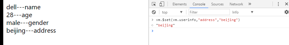 还有一种语法能达到同样的效果:vm.$set(修改位置,修改的属性,修改的属性值)