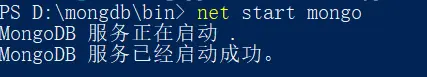 - 用管理员身份打开cmd或powershell,进入D:\mongdb\bin(安装目录的bin下)