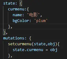 (1) 在store下的index.js文件中设置state属性:curmenu和mutations方法:setcurmenu