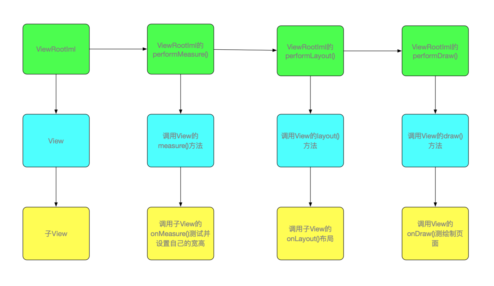 performTraversals()方法的流程分析完毕了,现在终于知道了View的绘制流程为什么分为onMeasure(),onLayout(),onDraw()这三个步骤了;贴出来的源码省略了很多细节,主要是为了把绘制的流程理清,建议可以自己跟着源码去走一遍;