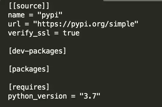 如果我们检查目录的内容,我们将看到pipenv创建了一个名为Pipfile的新文件。这是pipenv等效的需求文件。