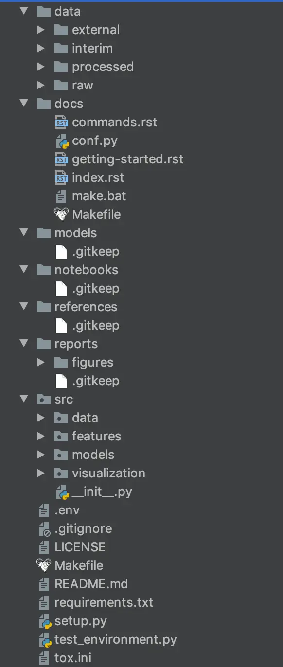 现在已经创建了下面的项目结构,这对于大多数数据科学项目来说已经足够了。