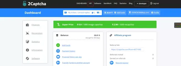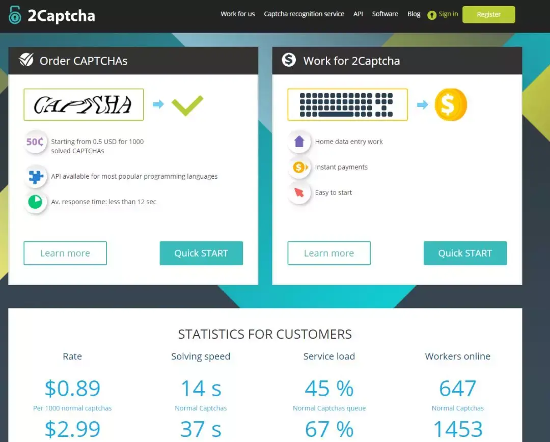 1、既来之则安之,选择了2captcha,就要看看人家的官网啦,如下图所示。