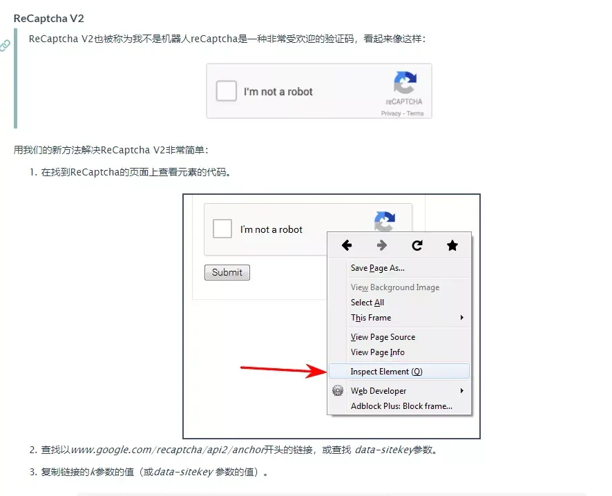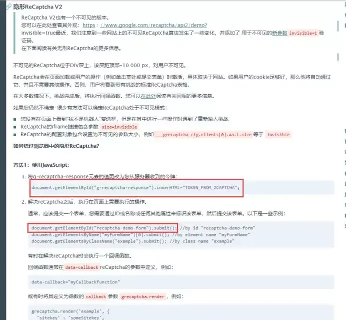 8、我们找到了,这种属于ReCaptcha v2验证码,确实和谷歌人机挺一样的,我们来看一下文档是怎么写的。