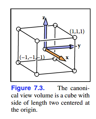 以上每一个变换都是不同的,接下来会以正交视图先作为例子,然后再到透视视图。书中讲述例子时顺序也跟以上队列相反,是从viewport transformation到projection transformation,再到camera transformation。