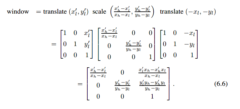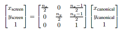 因为viewport transformation做的是变换轴对齐矩形(axis-aligned rectangle)至另一个轴对齐矩形,其做的变换就是矩阵变换中windowing transformations的一个具体情况: