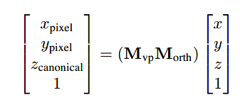 另外,变换保持了z=n与z=f之间z值的相关顺序,允许了深度排序(depth ordering),这对后续用于隐藏表面非常重要。