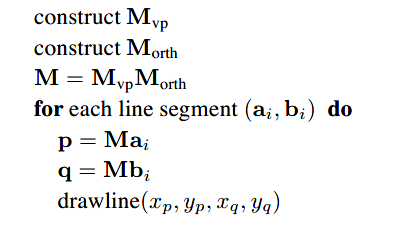 再次强调现在先假设所有的线段绘制在CVV之中,在后续学习到*裁剪(clipping)*时再不撤销此假设。