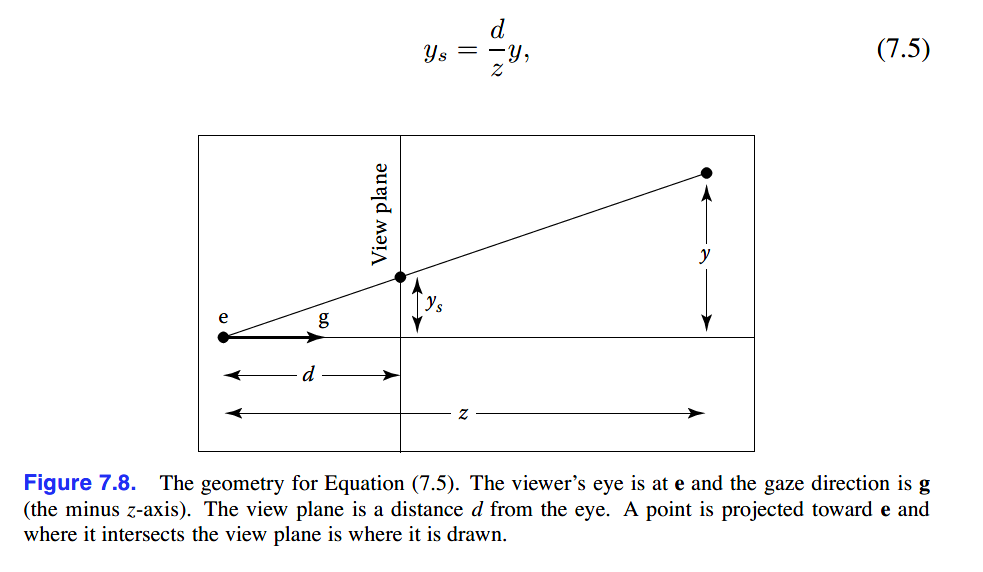 在学习第四章光线追踪时(光线追踪是image-order rendering),介绍了透视视图、正交视图及根据不同视图产生viewing rays。本章的介绍顺序和以上相反(。。说实话我个人不喜欢这种倒序),将会阐述如何使用矩阵变换去表示平行视图和透视视图。
